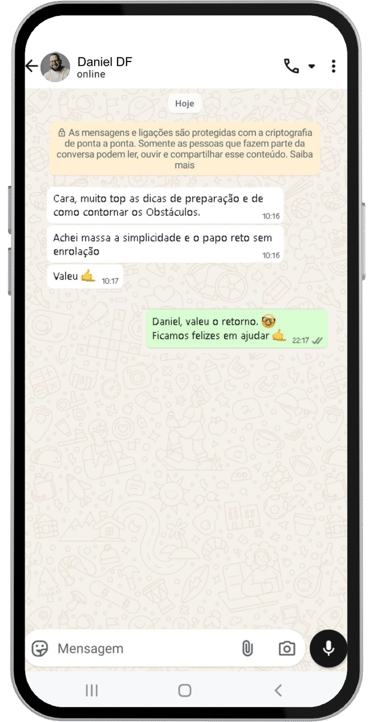 Então será um prazer falar com você pelo WhatsApp: 55(51) 98015-6888.
